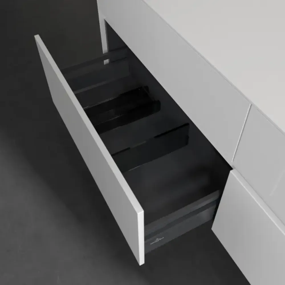 Продуманное внутреннее разделение мебели для ванной Villeroy & Boch позволяет создать индивидуальную систему организации пространства в ванной комнате. Элементы, расположение которых можно менять, например регулируемые стеклянные перегородки и контейнеры для аксессуаров различных размеров, обеспечивают хороший обзор и порядок. Благодаря практичной системе внутреннего разделения вы будете быстро находить принадлежности для ванной, которыми вы постоянно пользуетесь.