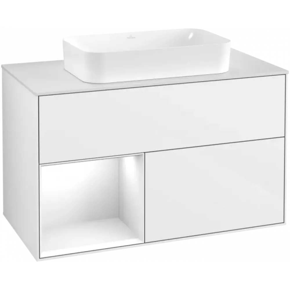 Villeroy & Boch Finion Тумба под раковину, с подсветкой, 2 выдвижных ящика, 1000 x 603 x 501 mm, Glossy White Lacquer / Glossy White Lacquer F651GFGF