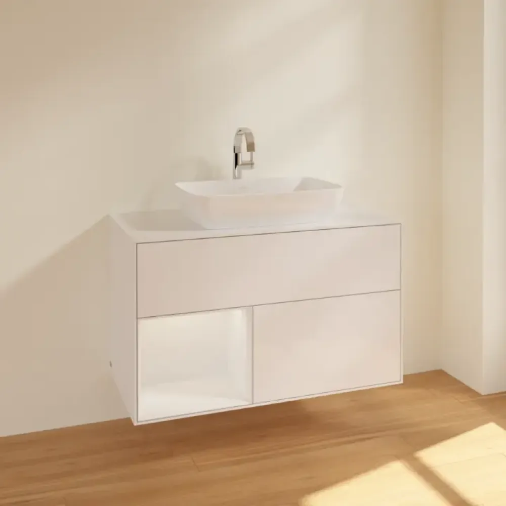 Villeroy & Boch Finion Тумба под раковину, с подсветкой, 2 выдвижных ящика, 1000 x 603 x 501 mm, Glossy White Lacquer / Glossy White Lacquer F771GFGF