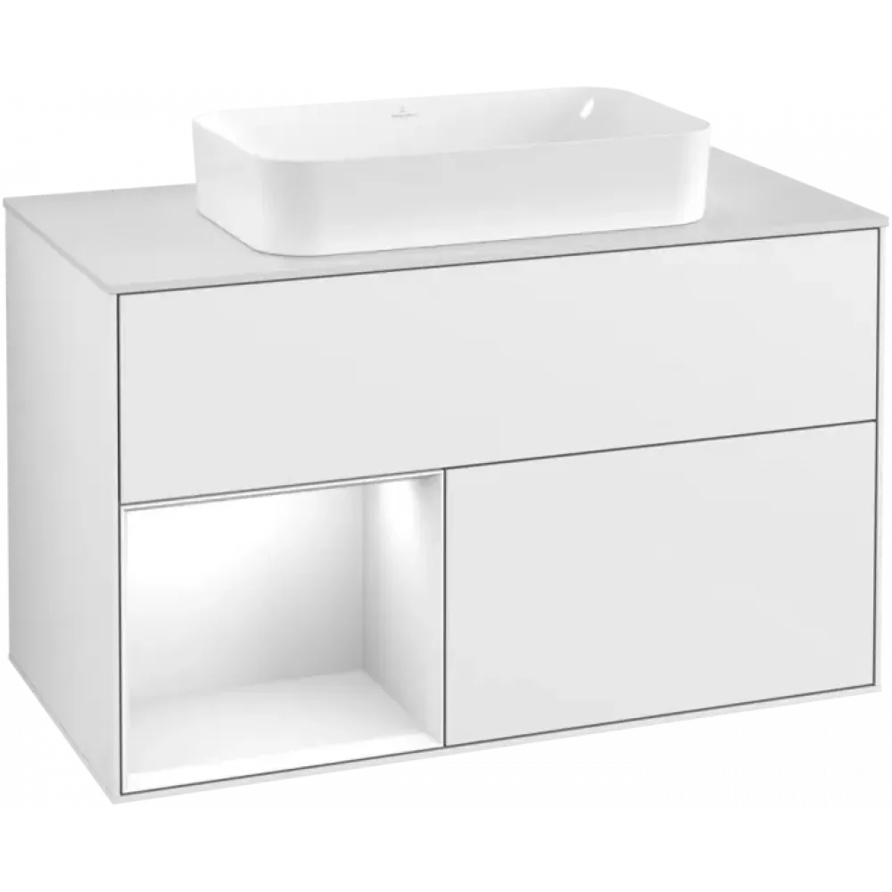 Villeroy & Boch Finion Тумба под раковину, с подсветкой, 2 выдвижных ящика, 1000 x 603 x 501 mm, Glossy White Lacquer / Glossy White Lacquer G241GFGF