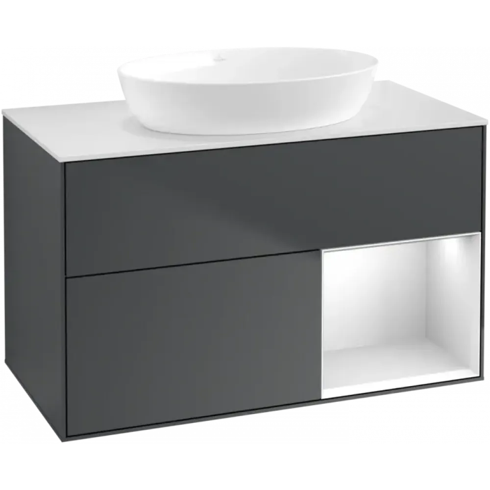 Villeroy & Boch Finion Тумба под раковину, с подсветкой, 2 выдвижных ящика, 1000 x 603 x 501 mm, Midnight Blue Matt Lacquer / White Matt Lacquer