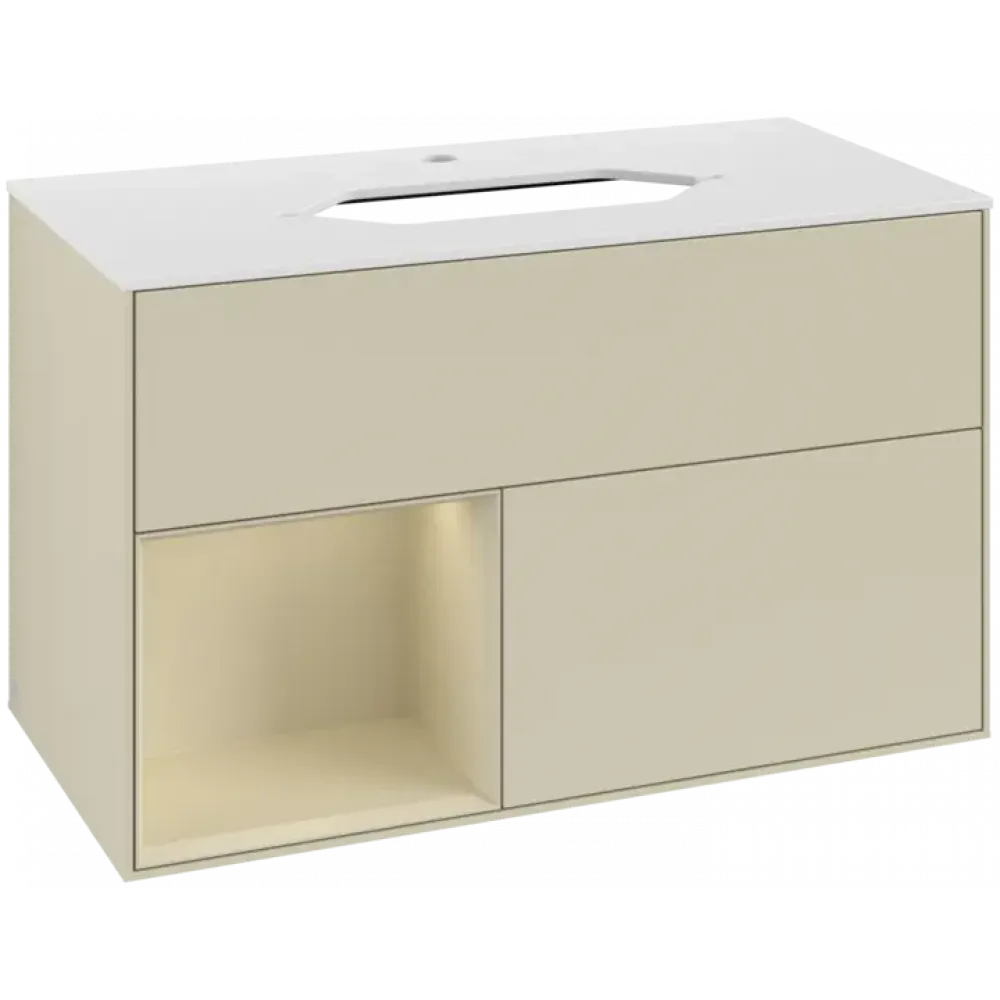 Villeroy & Boch Finion Тумба под раковину, с подсветкой, 2 выдвижных ящика, 1000 x 603 x 501 mm, Silk Grey Matt Lacquer / Silk Grey Matt Lacquer F241HJHJ