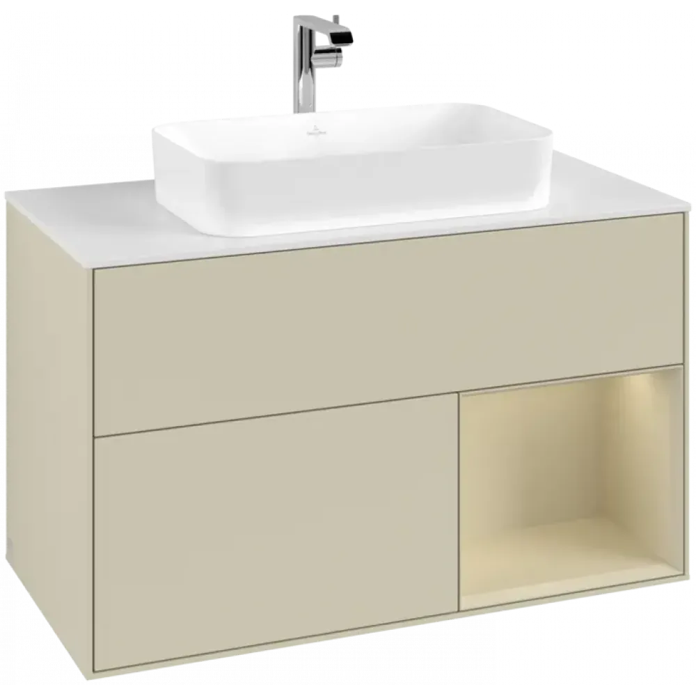 Villeroy & Boch Finion Тумба под раковину, с подсветкой, 2 выдвижных ящика, 1000 x 603 x 501 mm, Silk Grey Matt Lacquer / Silk Grey Matt Lacquer F251HJHJ