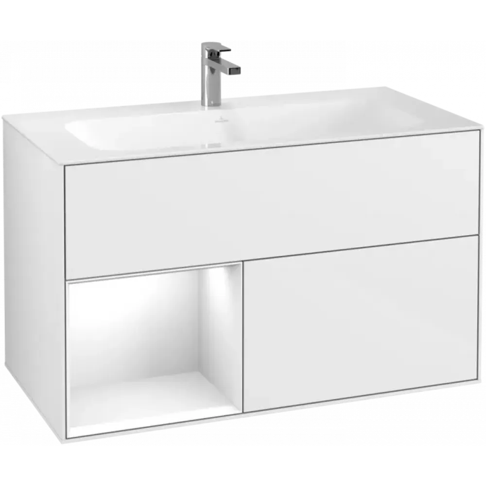 Villeroy & Boch Finion Тумба под раковину, с подсветкой, 2 выдвижных ящика, 996 x 591 x 498 mm, Glossy White Lacquer / Glossy White Lacquer G030GFGF