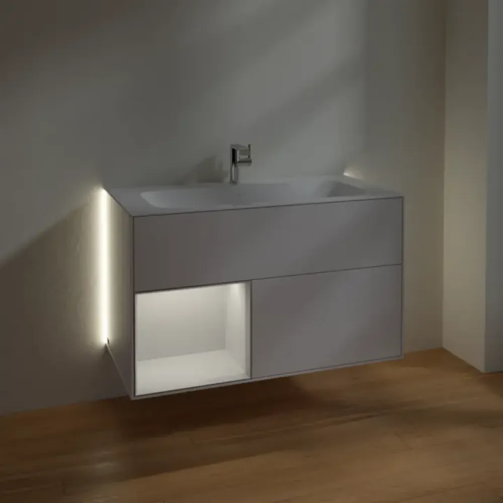 Инновационная концепция освещения Villeroy & Boch обеспечивает подсветку для создания особого настроения. Прямые и непрямые источники света в коллекции мебели для ванной Finion создают комфортную атмосферу в ванной. Так светодиодная подсветка с плавно регулируемой яркостью превращается в стильный элемент дизайна.