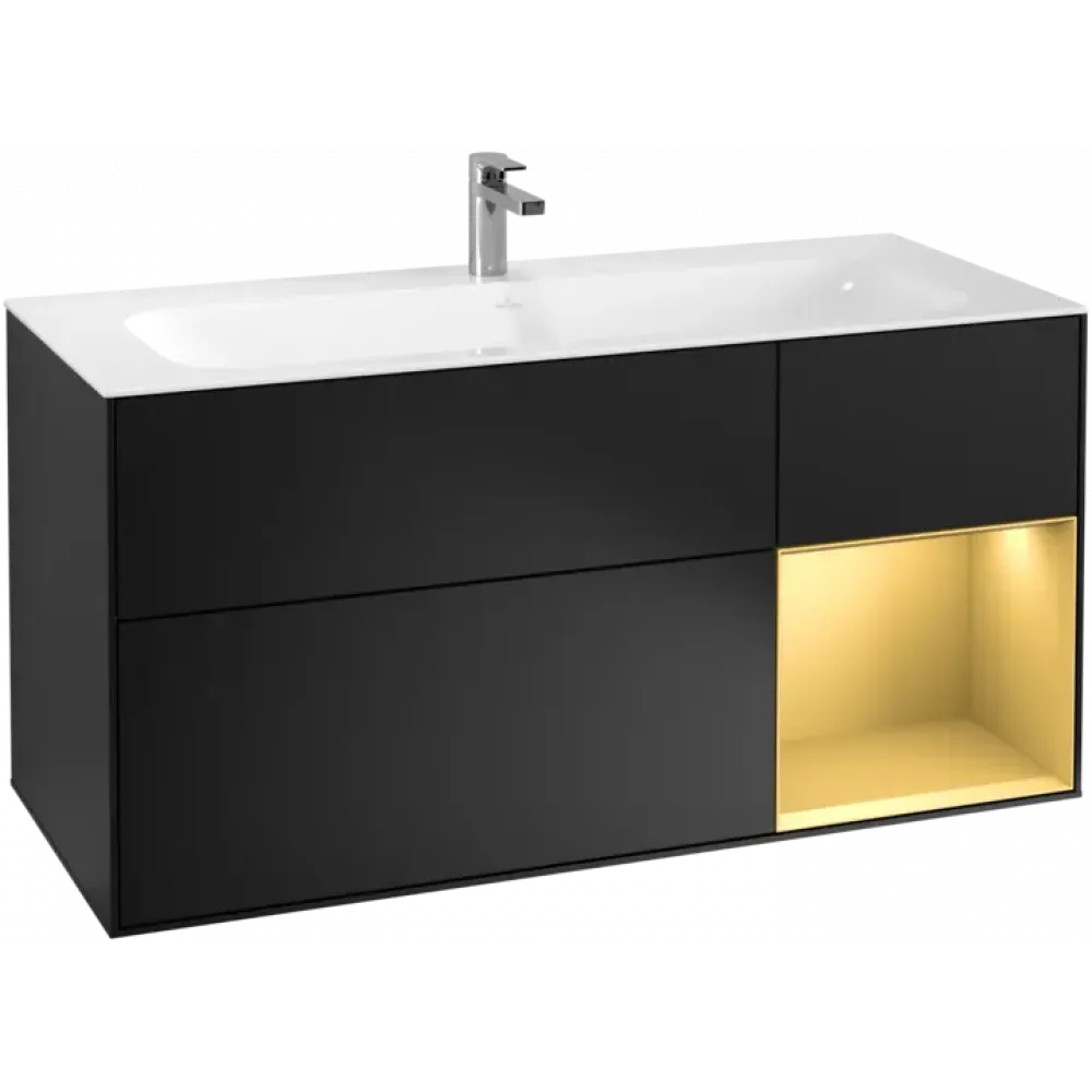 Villeroy & Boch Finion Тумба под раковину, с подсветкой, 3 выдвижных ящика, 1196 x 591 x 498 mm, Black Matt Lacquer / Gold Matt Lacquer F070HFPD