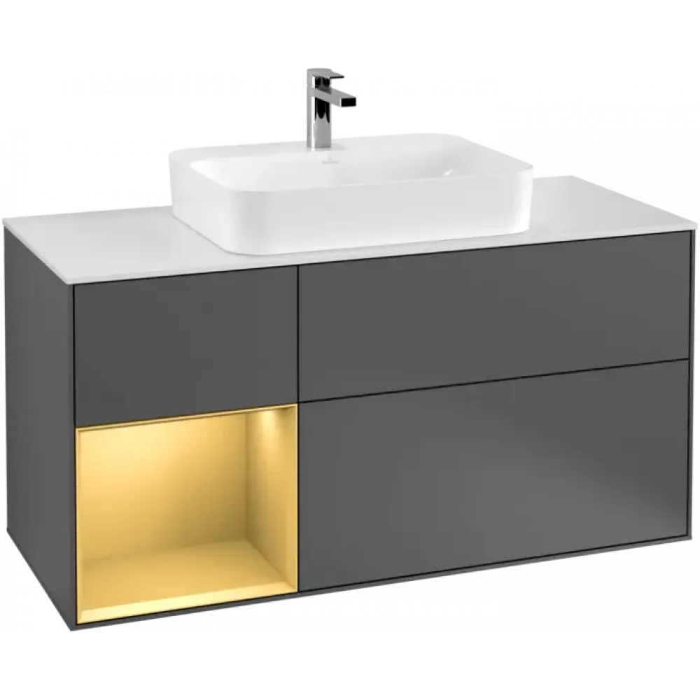 Villeroy & Boch Finion Тумба под раковину, с подсветкой, 3 выдвижных ящика, 1200 x 603 x 501 mm, Anthracite Matt Lacquer / Gold Matt Lacquer F411HFGK