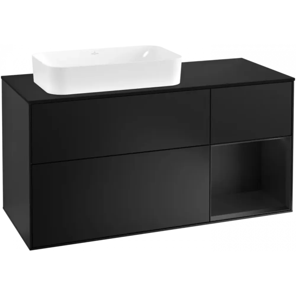 Villeroy & Boch Finion Тумба под раковину, с подсветкой, 3 выдвижных ящика, 1200 x 603 x 501 mm, Black Matt Lacquer / Black Matt Lacquer F282PDPD