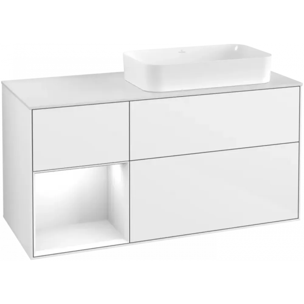 Villeroy & Boch Finion Тумба под раковину, с подсветкой, 3 выдвижных ящика, 1200 x 603 x 501 mm, Glossy White Lacquer / Glossy White Lacquer F681GFGF