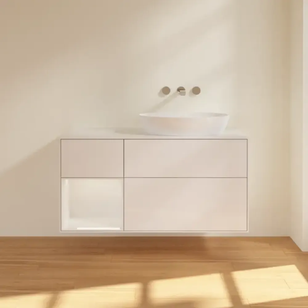 Villeroy & Boch Finion Тумба под раковину, с подсветкой, 3 выдвижных ящика, 1200 x 603 x 501 mm, Glossy White Lacquer / Glossy White Lacquer