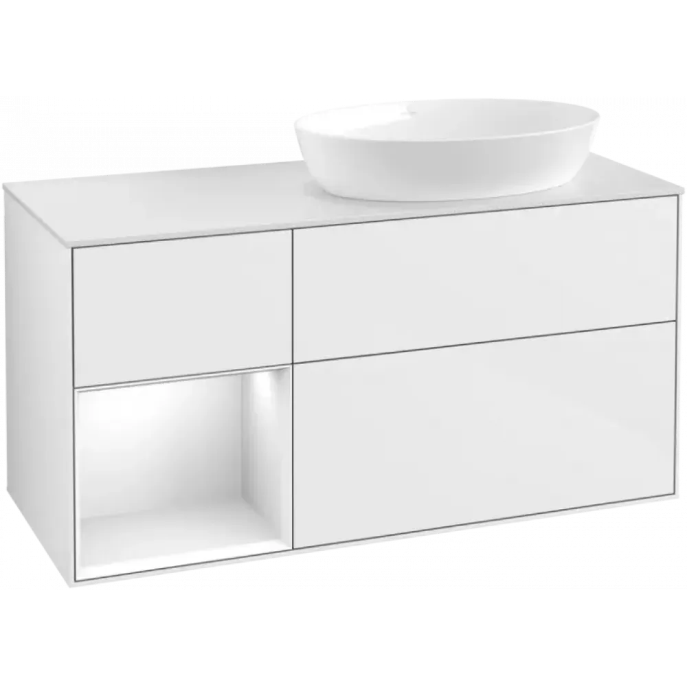 Villeroy & Boch Finion Тумба под раковину, с подсветкой, 3 выдвижных ящика, 1200 x 603 x 501 mm, Glossy White Lacquer / Glossy White Lacquer FA41GFGF