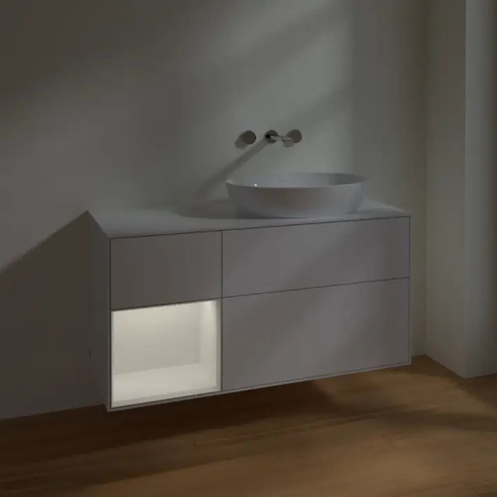 Инновационная концепция освещения Villeroy & Boch обеспечивает подсветку для создания особого настроения. Прямые и непрямые источники света в коллекции мебели для ванной Finion создают комфортную атмосферу в ванной. Так светодиодная подсветка с плавно регулируемой яркостью превращается в стильный элемент дизайна.