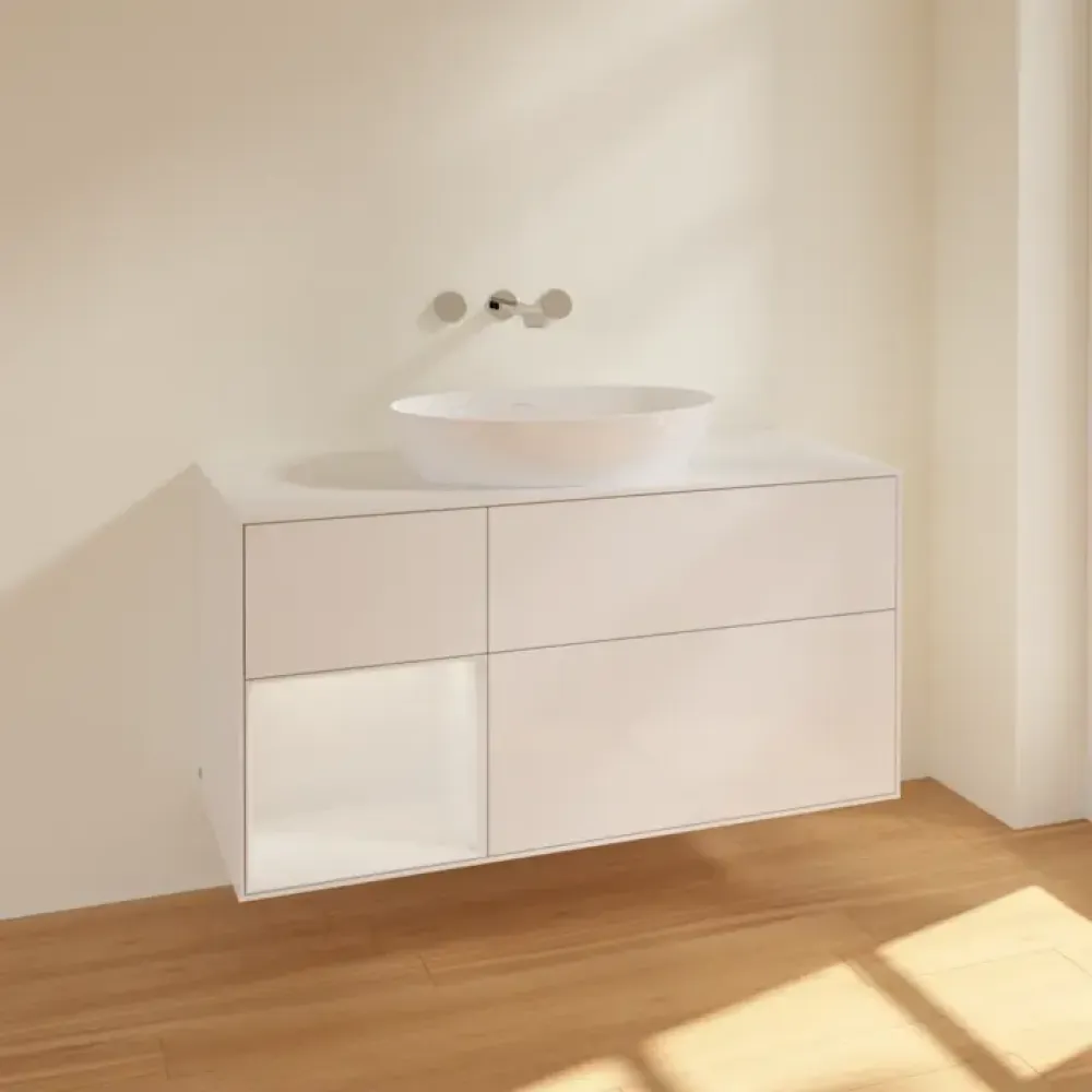 Villeroy & Boch Finion Тумба под раковину, с подсветкой, 3 выдвижных ящика, 1200 x 603 x 501 mm, Glossy White Lacquer / Glossy White Lacquer