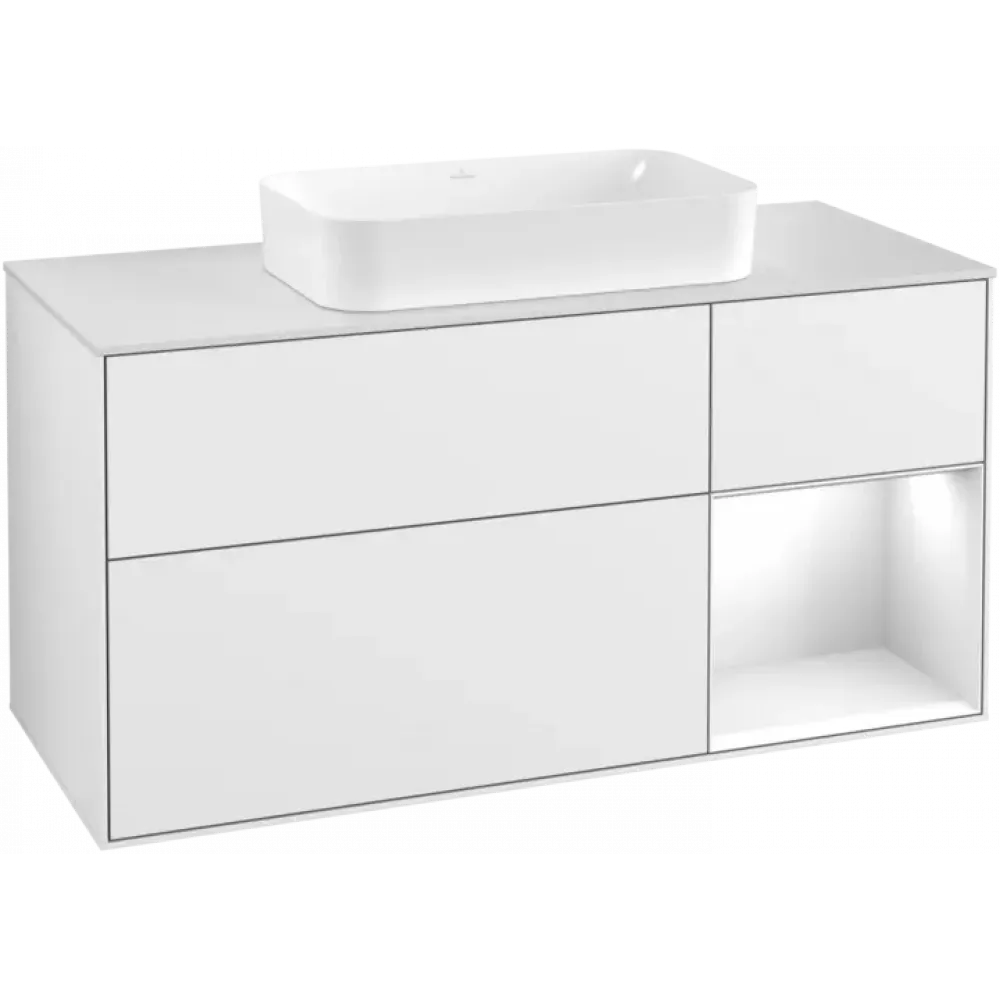 Villeroy & Boch Finion Тумба под раковину, с подсветкой, 3 выдвижных ящика, 1200 x 603 x 501 mm, Glossy White Lacquer / Glossy White Lacquer G301GFGF