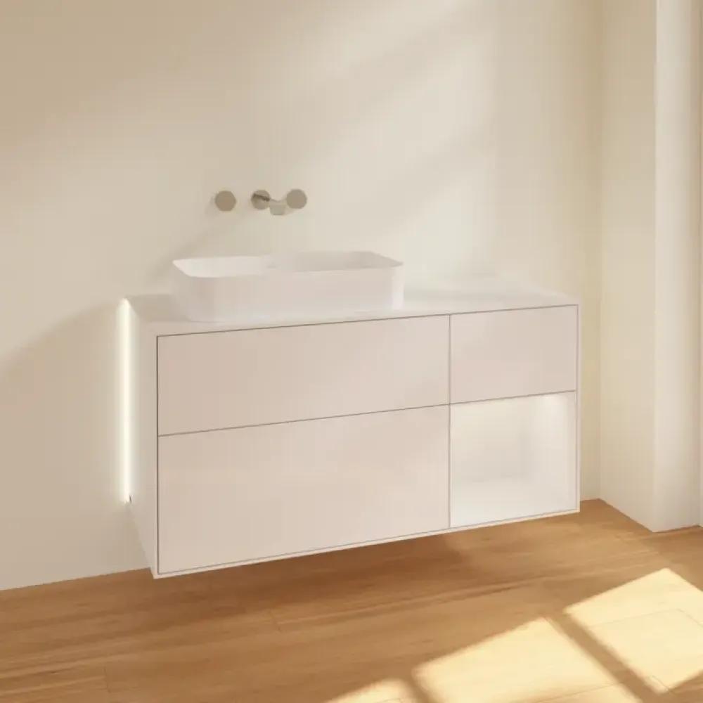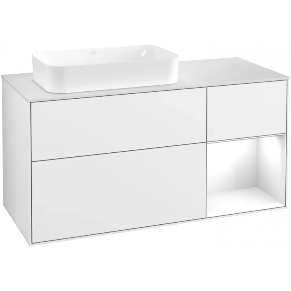 Villeroy & Boch Finion Тумба под раковину, с подсветкой, 3 выдвижных ящика, 1200 x 603 x 501 mm, Glossy White Lacquer / Glossy White Lacquer G691GFGF