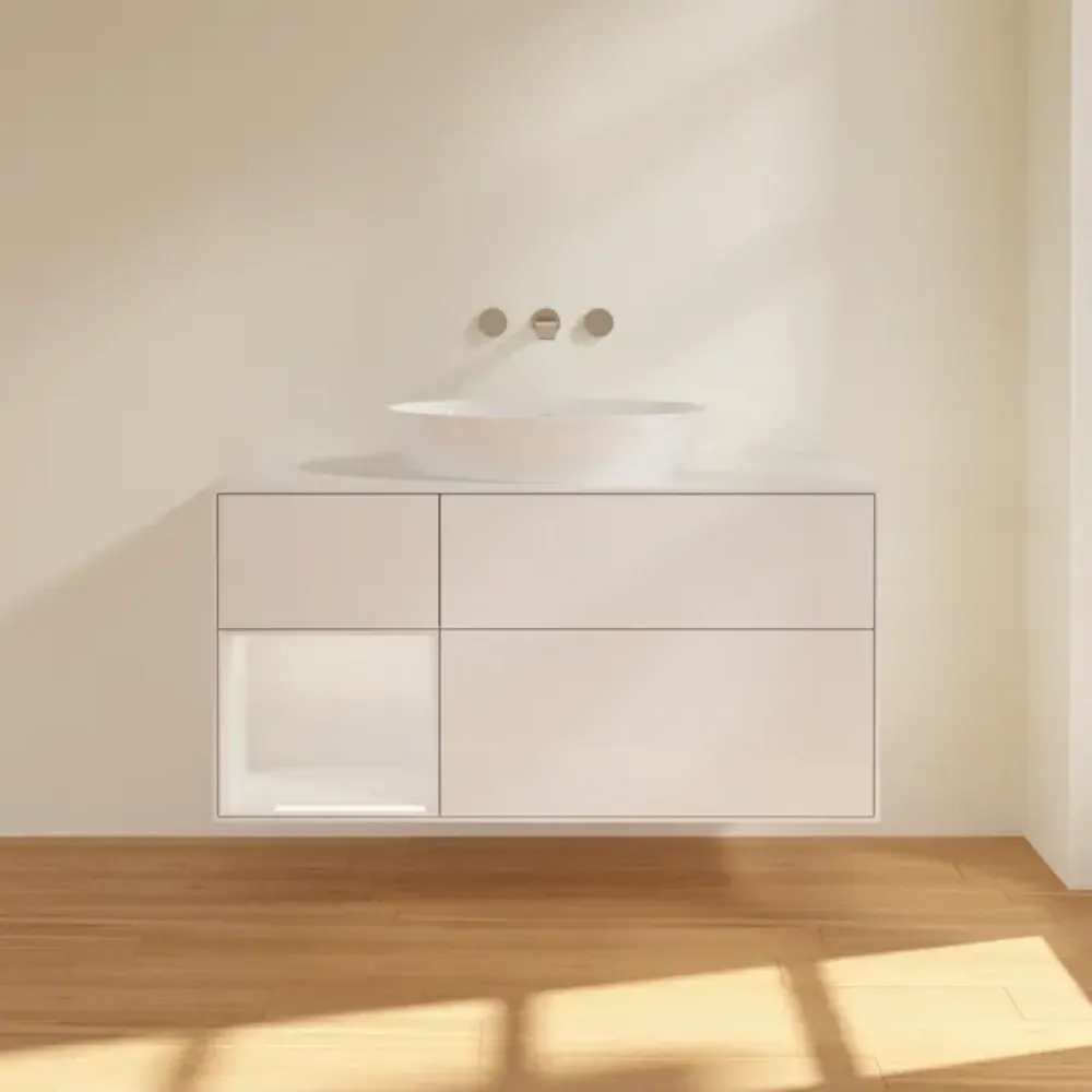 Villeroy & Boch Finion Тумба под раковину, с подсветкой, 3 выдвижных ящика, 1200 x 603 x 501 mm, Glossy White Lacquer / Glossy White Lacquer