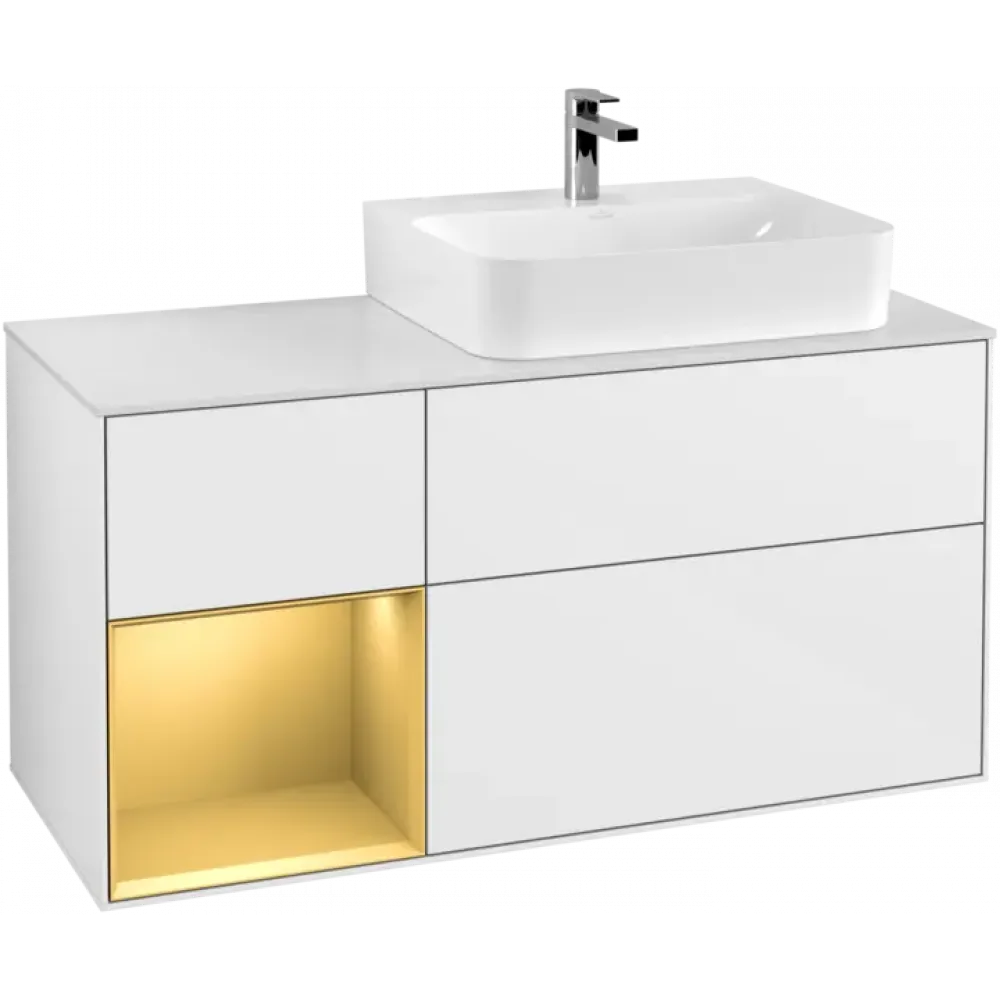 Villeroy & Boch Finion Тумба под раковину, с подсветкой, 3 выдвижных ящика, 1200 x 603 x 501 mm, Glossy White Lacquer / Gold Matt Lacquer F141HFGF