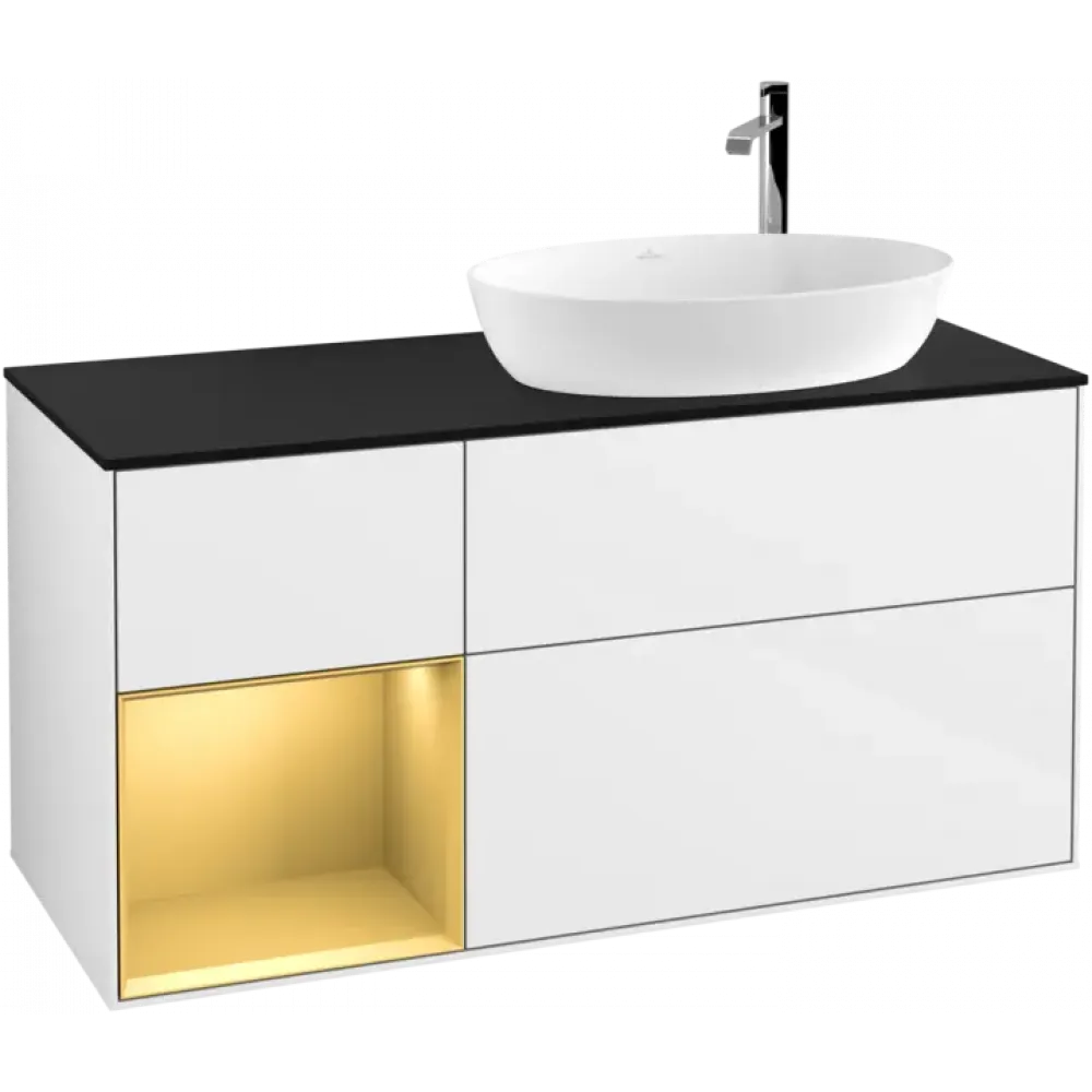 Villeroy & Boch Finion Тумба под раковину, с подсветкой, 3 выдвижных ящика, 1200 x 603 x 501 mm, Glossy White Lacquer / Gold Matt Lacquer G922HFGF