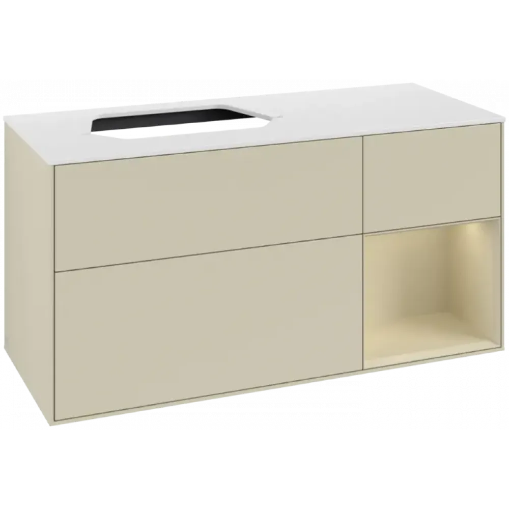 Villeroy & Boch Finion Тумба под раковину, с подсветкой, 3 выдвижных ящика, 1200 x 603 x 501 mm, Silk Grey Matt Lacquer / Silk Grey Matt Lacquer F401HJHJ