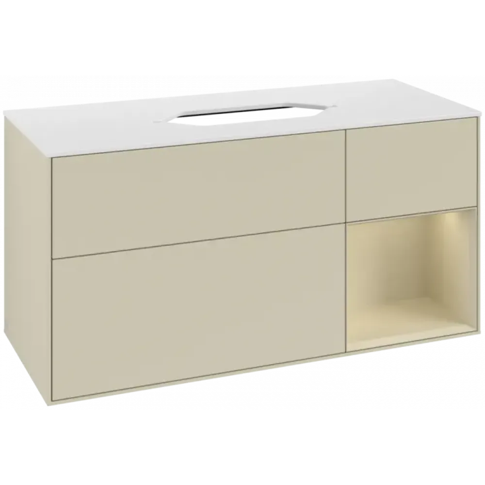 Villeroy & Boch Finion Тумба под раковину, с подсветкой, 3 выдвижных ящика, 1200 x 603 x 501 mm, Silk Grey Matt Lacquer / Silk Grey Matt Lacquer F711HJHJ