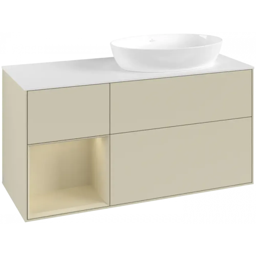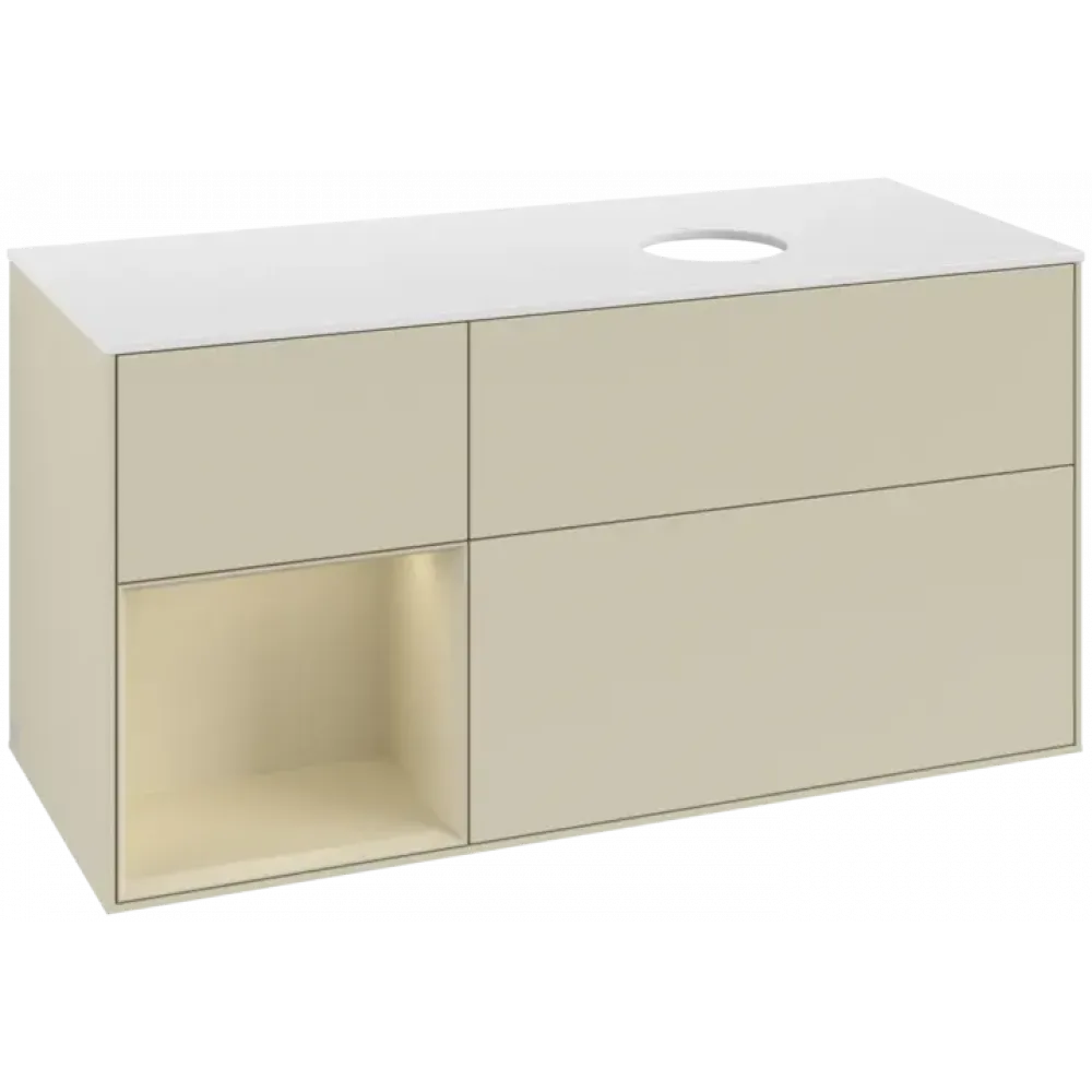 Villeroy & Boch Finion Тумба под раковину, с подсветкой, 3 выдвижных ящика, 1200 x 603 x 501 mm, Silk Grey Matt Lacquer / Silk Grey Matt Lacquer