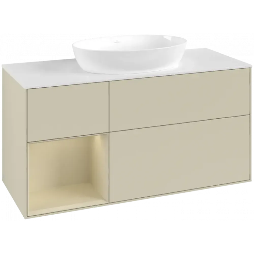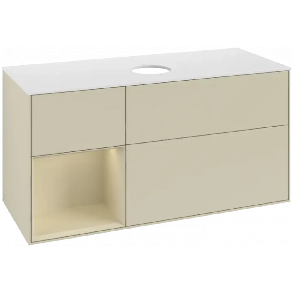 Villeroy & Boch Finion Тумба под раковину, с подсветкой, 3 выдвижных ящика, 1200 x 603 x 501 mm, Silk Grey Matt Lacquer / Silk Grey Matt Lacquer