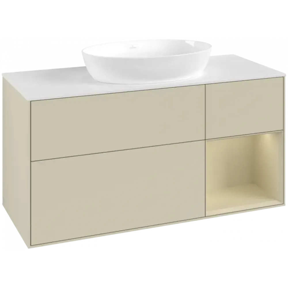 Villeroy & Boch Finion Тумба под раковину, с подсветкой, 3 выдвижных ящика, 1200 x 603 x 501 mm, Silk Grey Matt Lacquer / Silk Grey Matt Lacquer