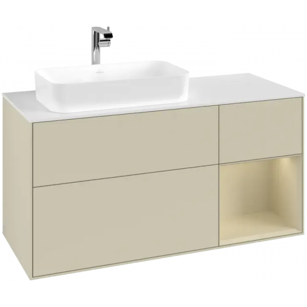 Villeroy & Boch Finion Тумба под раковину, с подсветкой, 3 выдвижных ящика, 1200 x 603 x 501 mm, Silk Grey Matt Lacquer / Silk Grey Matt Lacquer G281HJHJ