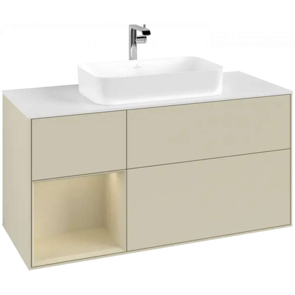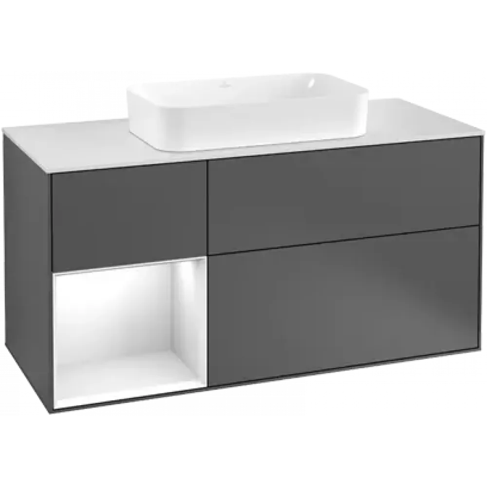 Villeroy & Boch Finion Тумба под раковину, с подсветкой, 3 выдвижных ящика, 1200 x 603 x 501 mm, Silk Grey Matt Lacquer / Silk Grey Matt Lacquer G291HJHJ
