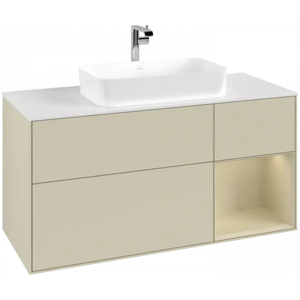 Villeroy & Boch Finion Тумба под раковину, с подсветкой, 3 выдвижных ящика, 1200 x 603 x 501 mm, Silk Grey Matt Lacquer / Silk Grey Matt Lacquer G301HJHJ