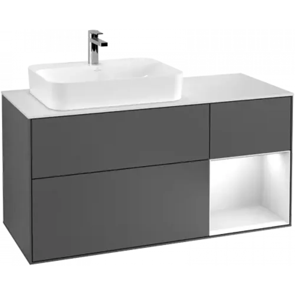 Villeroy & Boch Finion Тумба под раковину, с подсветкой, 3 выдвижных ящика, 1200 x 603 x 501 mm, Silk Grey Matt Lacquer / Silk Grey Matt Lacquer G401HJHJ
