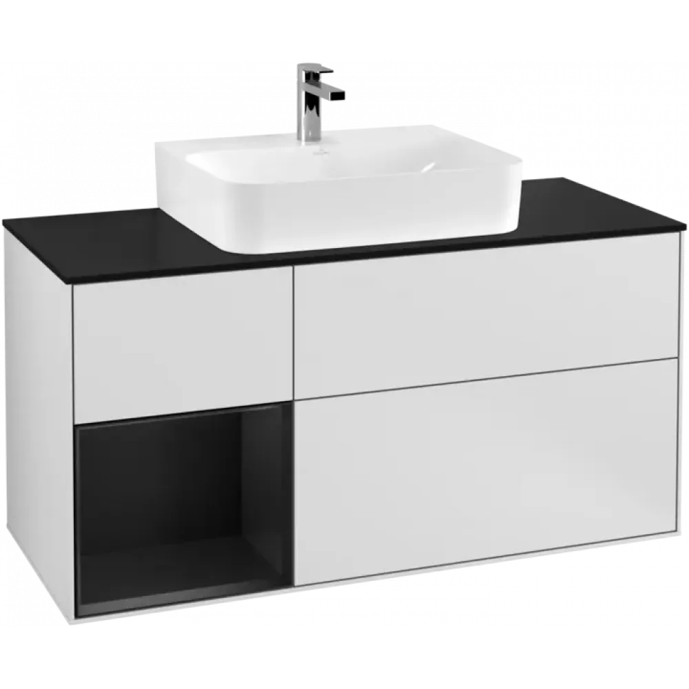 Villeroy & Boch Finion Тумба под раковину, с подсветкой, 3 выдвижных ящика, 1200 x 603 x 501 mm, White Matt Lacquer / Black Matt Lacquer G162PDMT