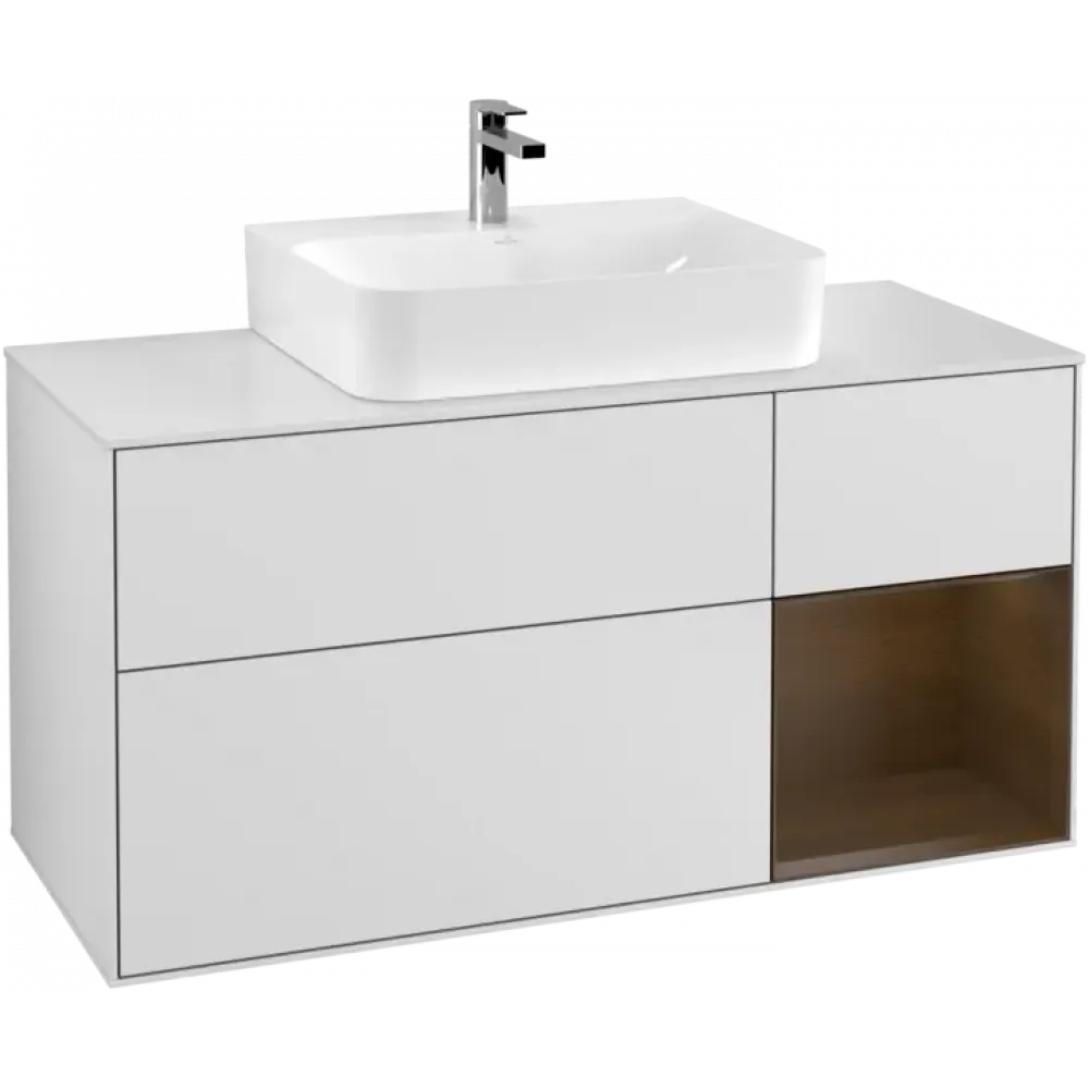 Villeroy & Boch Finion Тумба под раковину, с подсветкой, 3 выдвижных ящика, 1200 x 603 x 501 mm, White Matt Lacquer / Walnut Veneer