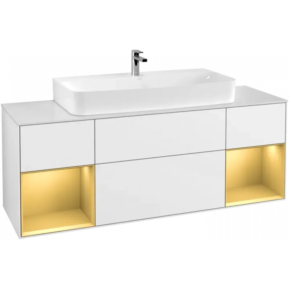 Villeroy & Boch Finion Тумба под раковину, с подсветкой, 4 выдвижных ящика, 1600 x 603 x 501 mm, Glossy White Lacquer / Gold Matt Lacquer F211HFGF