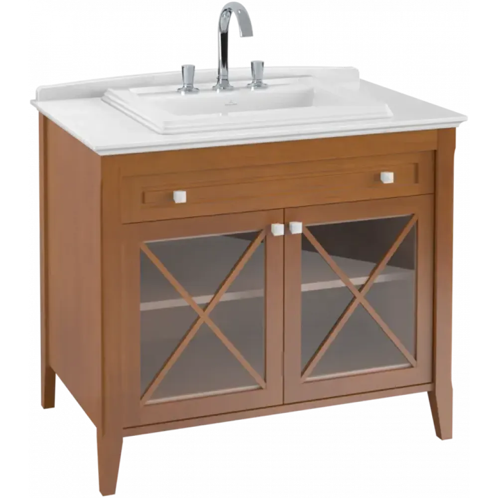 Villeroy & Boch Hommage тумба под раковину с раковиной, 1 выдвижной ящик, 2 двери, 985 x 905 x 620 mm, Walnut/Grey-White Marble / Walnut/Grey-White Marble 897963R1