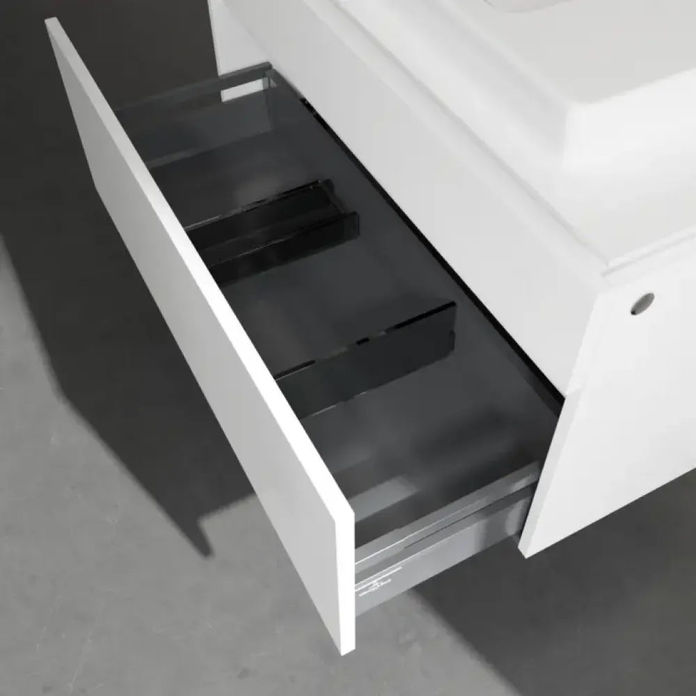 Продуманное внутреннее разделение мебели для ванной Villeroy & Boch позволяет создать индивидуальную систему организации пространства в ванной комнате. Элементы, расположение которых можно менять, например регулируемые стеклянные перегородки и контейнеры для аксессуаров различных размеров, обеспечивают хороший обзор и порядок. Благодаря практичной системе внутреннего разделения вы будете быстро находить принадлежности для ванной, которыми вы постоянно пользуетесь.