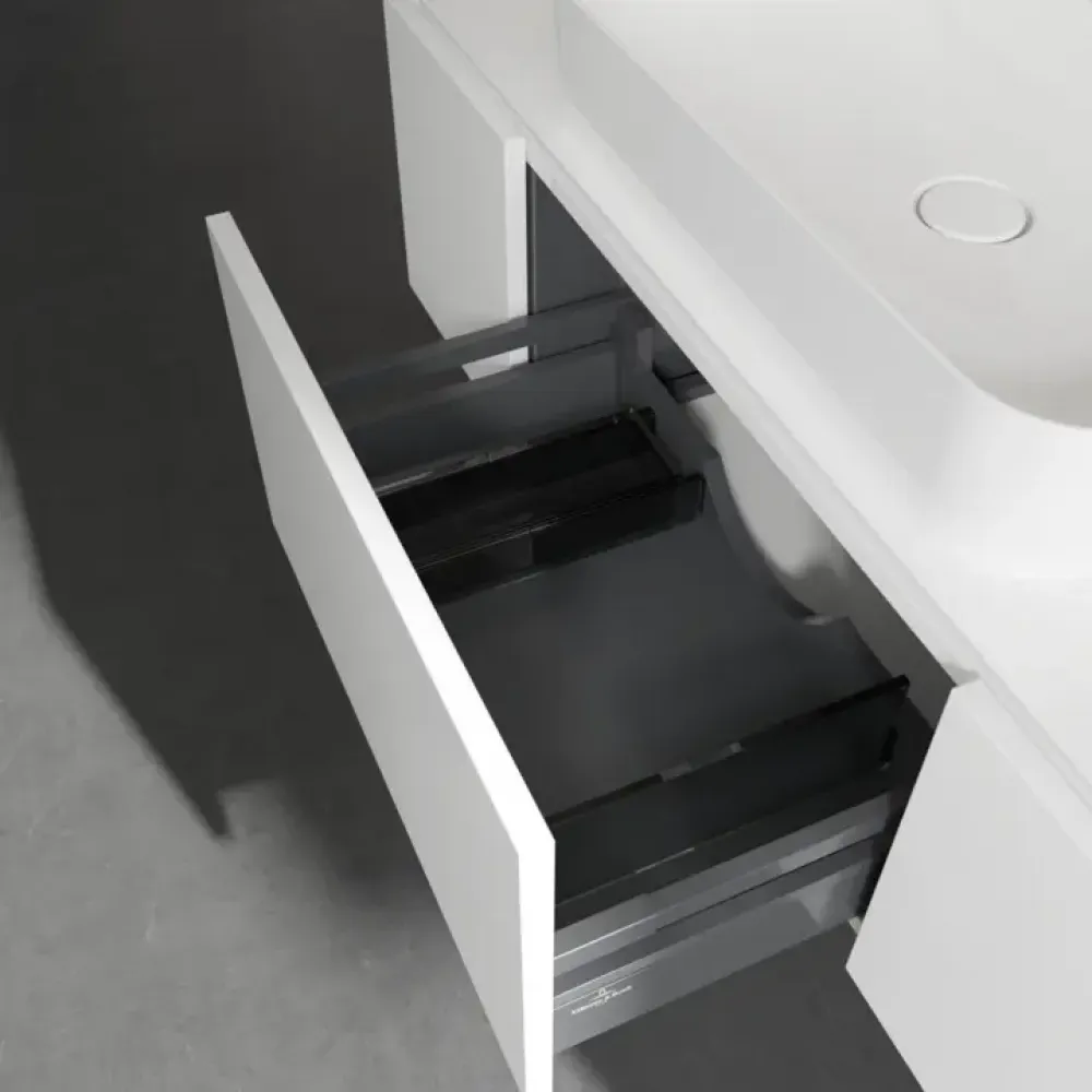 Продуманное внутреннее разделение мебели для ванной Villeroy & Boch позволяет создать индивидуальную систему организации пространства в ванной комнате. Элементы, расположение которых можно менять, например регулируемые стеклянные перегородки и контейнеры для аксессуаров различных размеров, обеспечивают хороший обзор и порядок. Благодаря практичной системе внутреннего разделения вы будете быстро находить принадлежности для ванной, которыми вы постоянно пользуетесь.