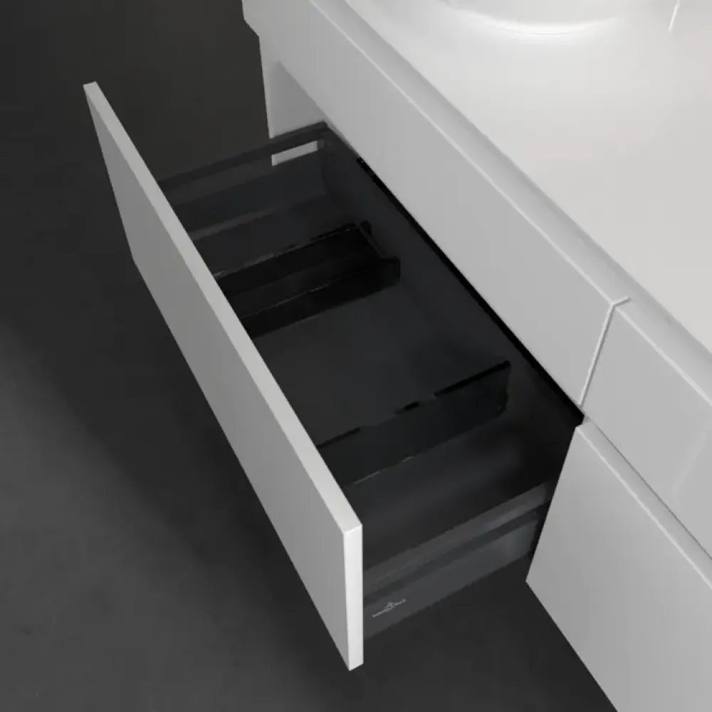 Продуманное внутреннее разделение мебели для ванной Villeroy & Boch позволяет создать индивидуальную систему организации пространства в ванной комнате. Элементы, расположение которых можно менять, например регулируемые стеклянные перегородки и контейнеры для аксессуаров различных размеров, обеспечивают хороший обзор и порядок. Благодаря практичной системе внутреннего разделения вы будете быстро находить принадлежности для ванной, которыми вы постоянно пользуетесь.
