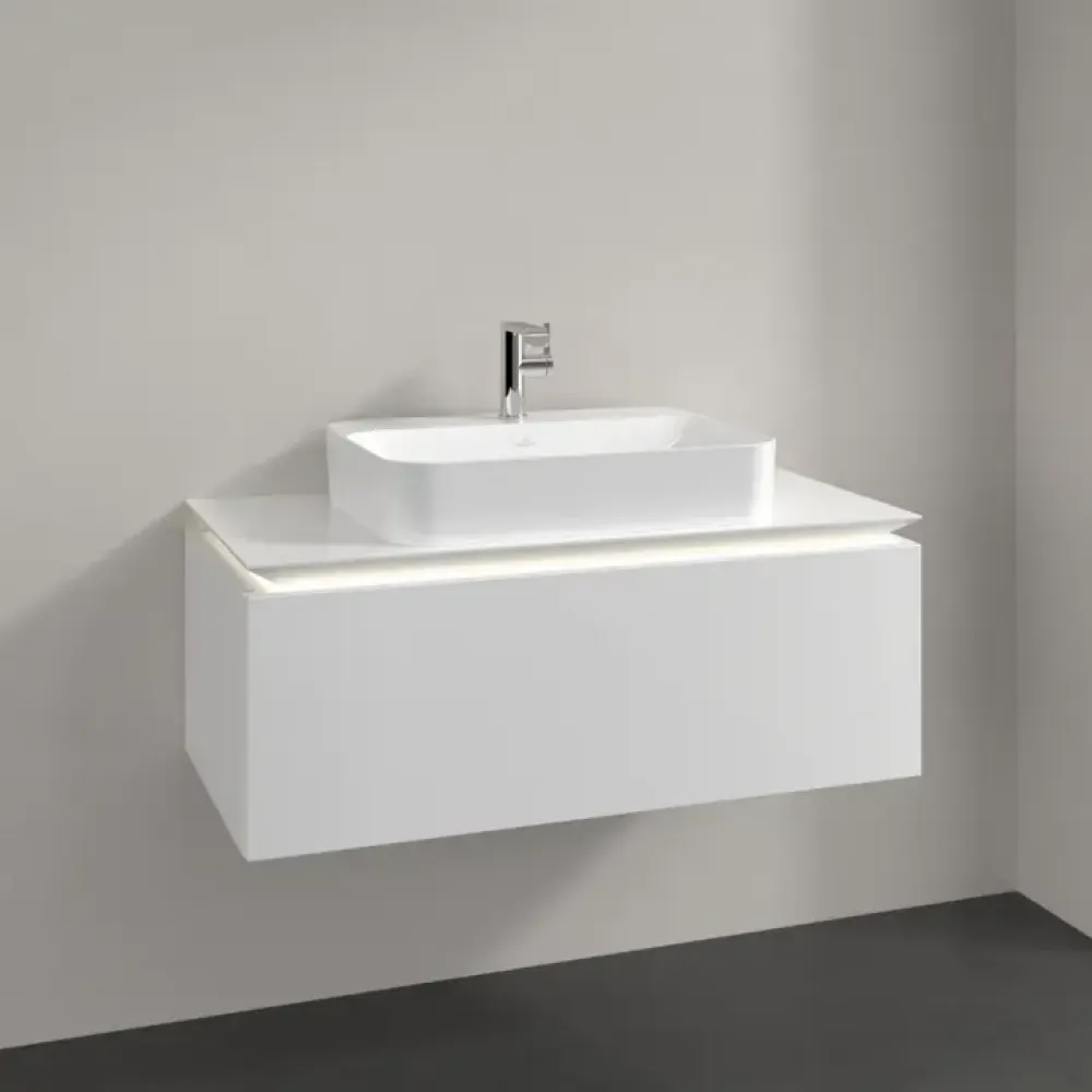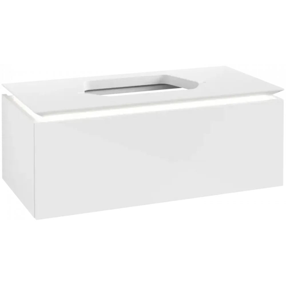 Villeroy & Boch Legato Тумба под раковину, с подсветкой, 1 выдвижной ящик, 1000 x 380 x 500 mm, Glossy White / Glossy White