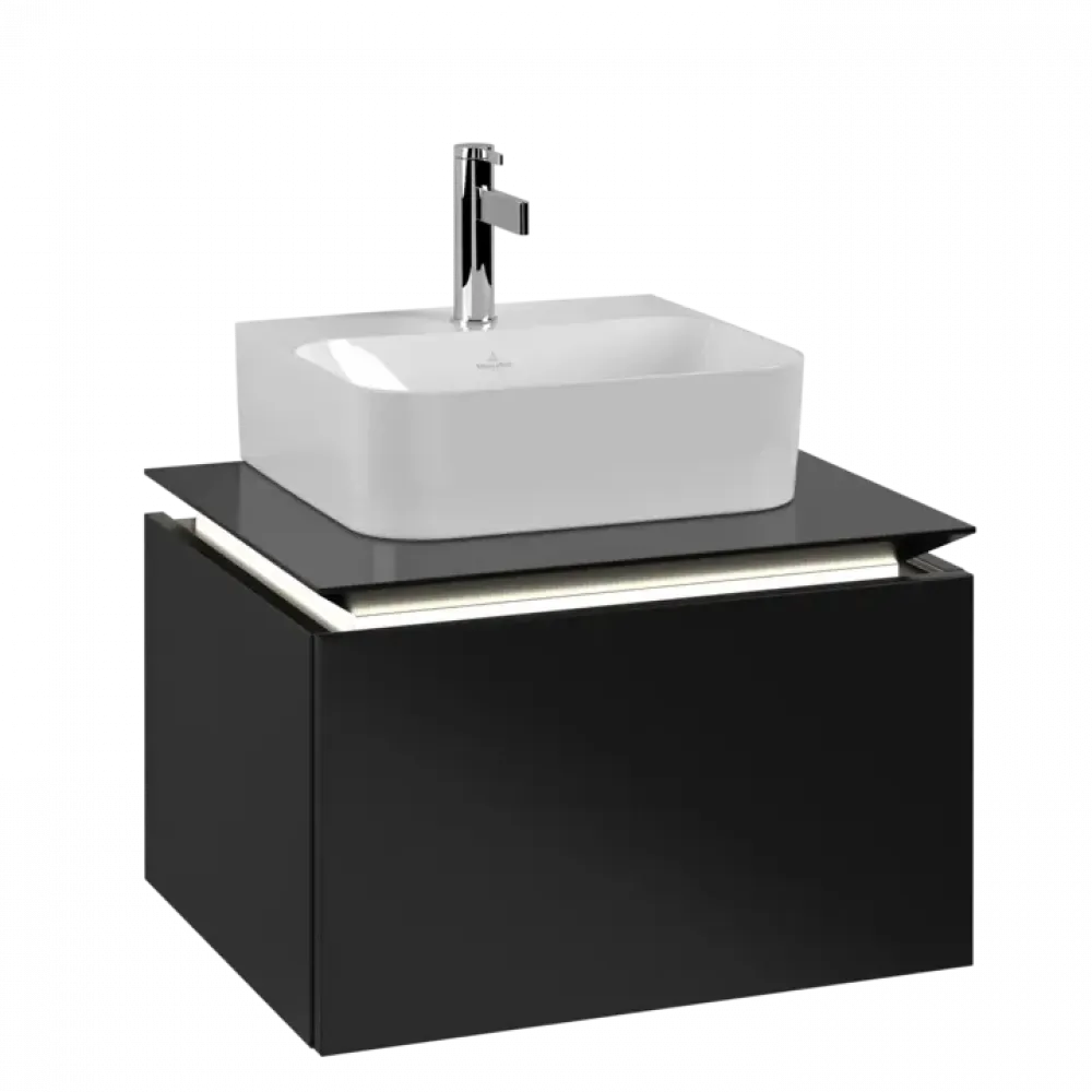 Villeroy & Boch Legato Тумба под раковину, с подсветкой, 1 выдвижной ящик, 600 x 380 x 500 mm, Black Matt Lacquer / Black Matt Lacquer