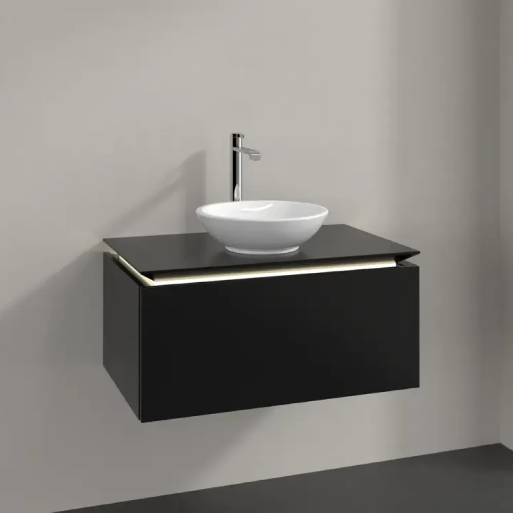 Villeroy & Boch Legato Тумба под раковину, с подсветкой, 1 выдвижной ящик, 800 x 380 x 500 mm, Black Matt Lacquer / Black Matt Lacquer
