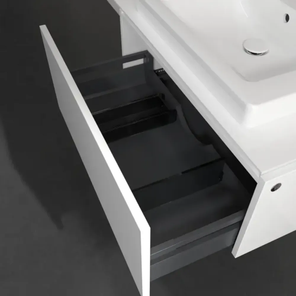 Продуманное внутреннее разделение мебели для ванной Villeroy & Boch позволяет создать индивидуальную систему организации пространства в ванной комнате. Элементы, расположение которых можно менять, например регулируемые стеклянные перегородки и контейнеры для аксессуаров различных размеров, обеспечивают хороший обзор и порядок. Благодаря практичной системе внутреннего разделения вы будете быстро находить принадлежности для ванной, которыми вы постоянно пользуетесь.
