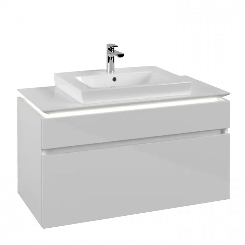 Villeroy & Boch Legato Тумба под раковину, с подсветкой, 2 выдвижных ящика, 1000 x 550 x 500 mm, Glossy White / Glossy White