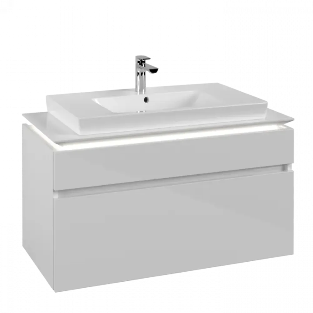 Villeroy & Boch Legato Тумба под раковину, с подсветкой, 2 выдвижных ящика, 1000 x 550 x 500 mm, Glossy White / Glossy White B695L0DH