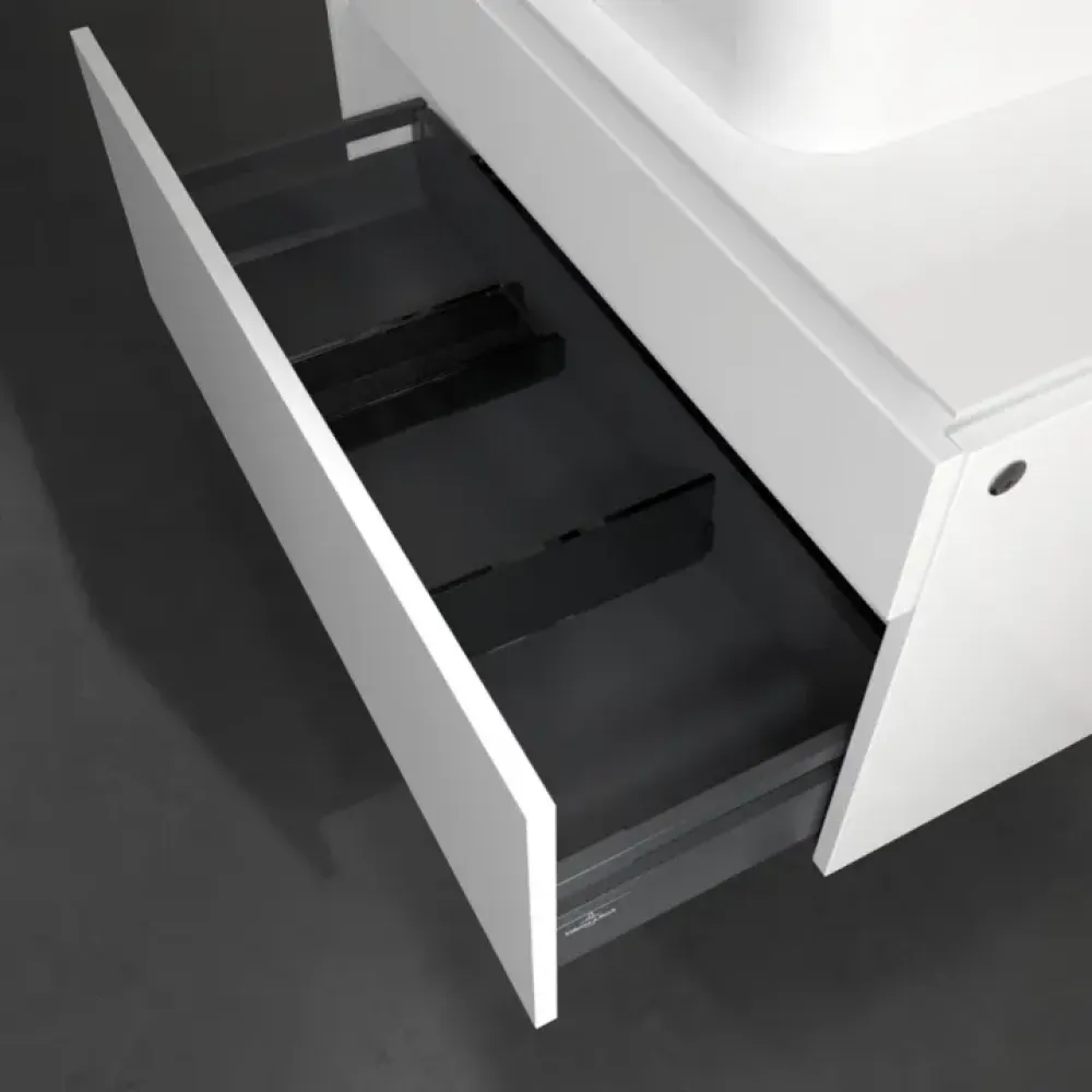 Продуманное внутреннее разделение мебели для ванной Villeroy & Boch позволяет создать индивидуальную систему организации пространства в ванной комнате. Элементы, расположение которых можно менять, например регулируемые стеклянные перегородки и контейнеры для аксессуаров различных размеров, обеспечивают хороший обзор и порядок. Благодаря практичной системе внутреннего разделения вы будете быстро находить принадлежности для ванной, которыми вы постоянно пользуетесь.