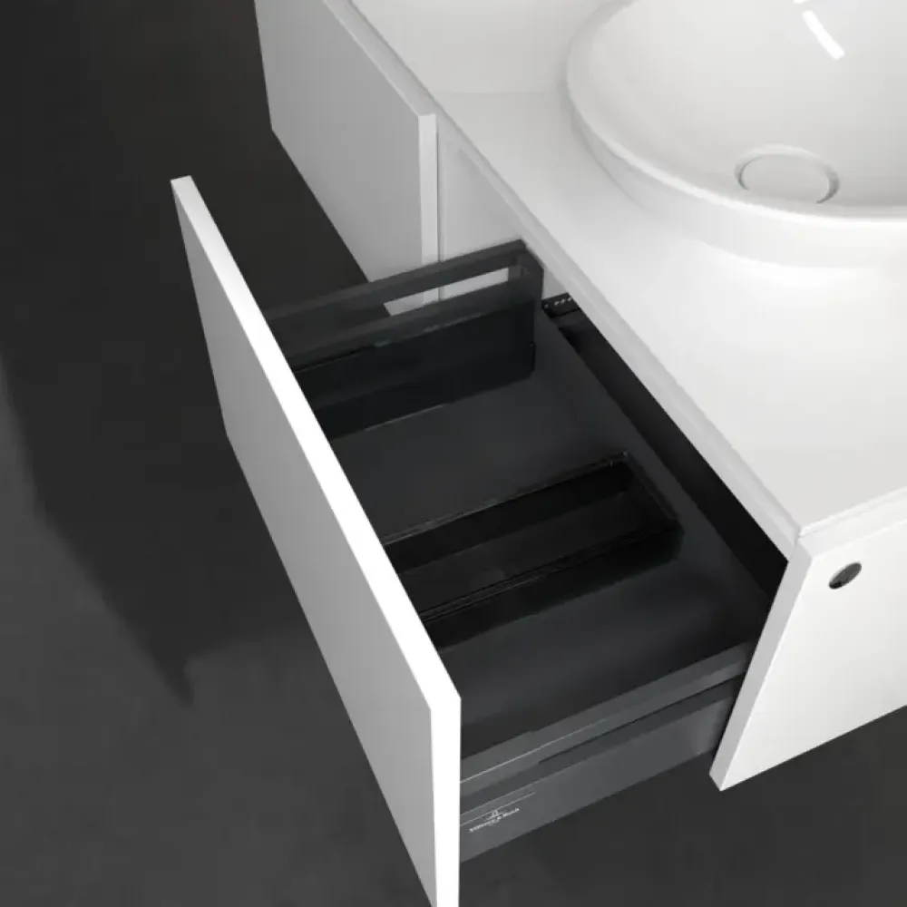 Продуманное внутреннее разделение мебели для ванной Villeroy & Boch позволяет создать индивидуальную систему организации пространства в ванной комнате. Элементы, расположение которых можно менять, например регулируемые стеклянные перегородки и контейнеры для аксессуаров различных размеров, обеспечивают хороший обзор и порядок. Благодаря практичной системе внутреннего разделения вы будете быстро находить принадлежности для ванной, которыми вы постоянно пользуетесь.
