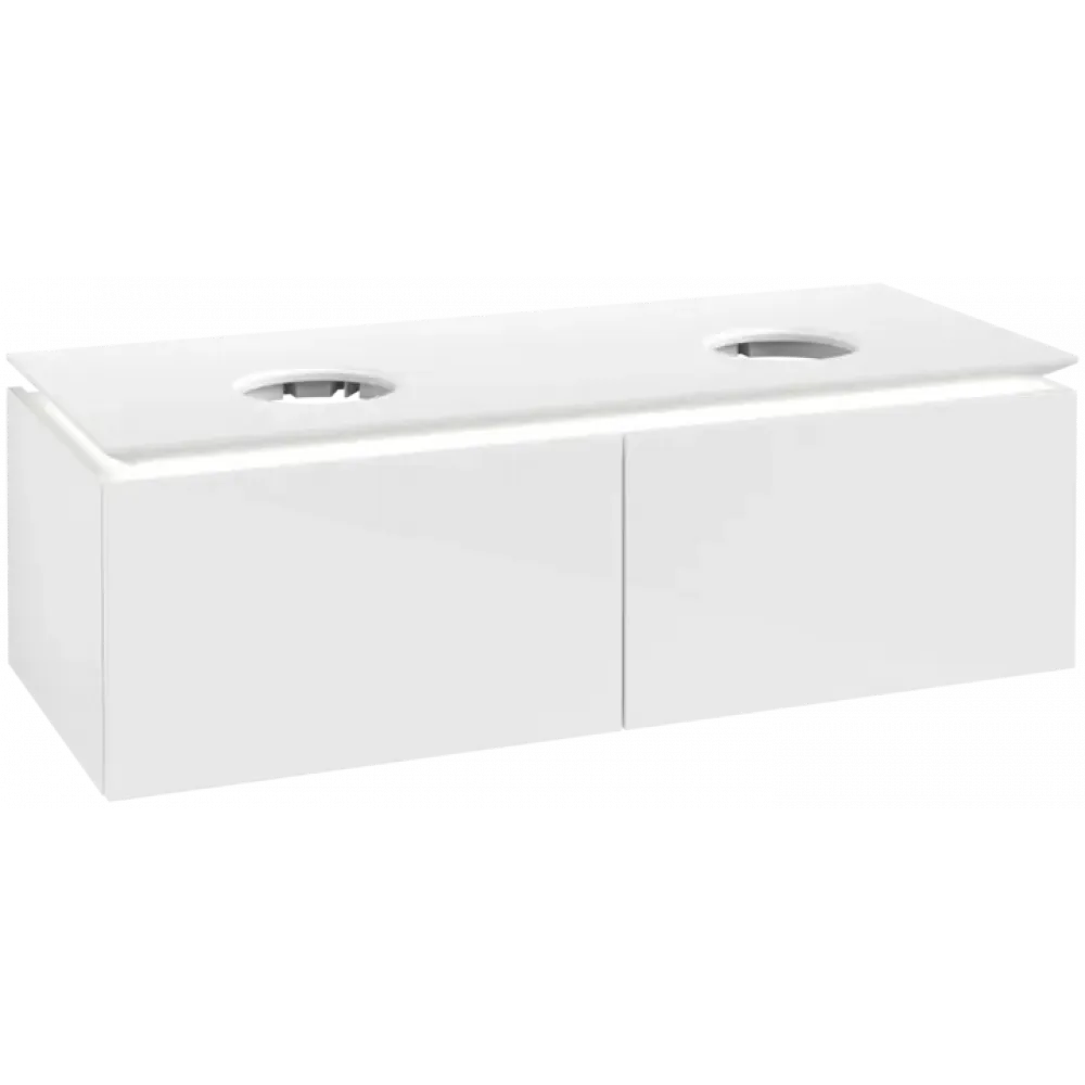 Villeroy & Boch Legato Тумба под раковину, с подсветкой, 2 выдвижных ящика, 1200 x 380 x 500 mm, Glossy White / Glossy White B583L0DH