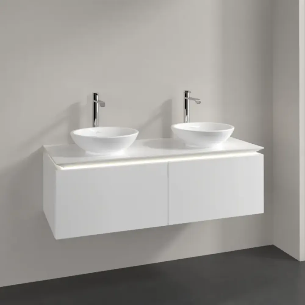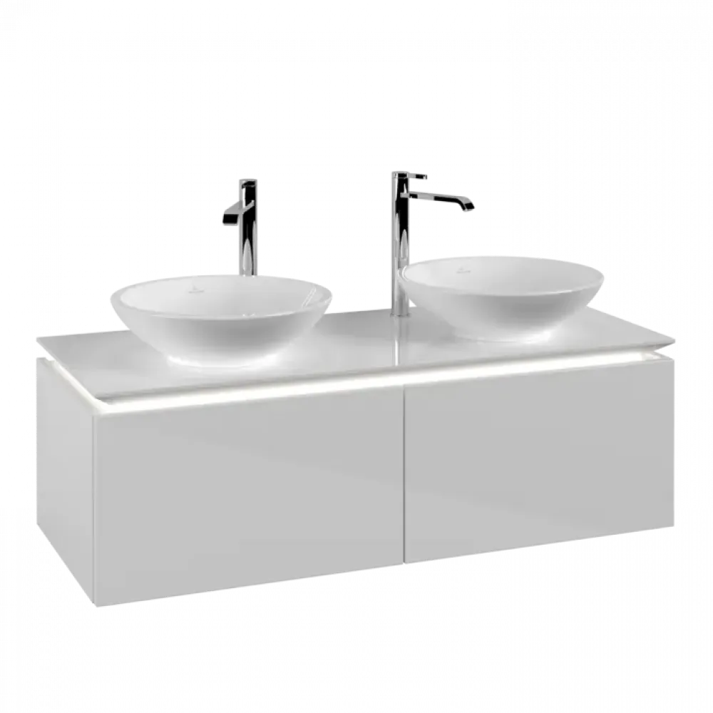 Villeroy & Boch Legato Тумба под раковину, с подсветкой, 2 выдвижных ящика, 1200 x 380 x 500 mm, Glossy White / Glossy White