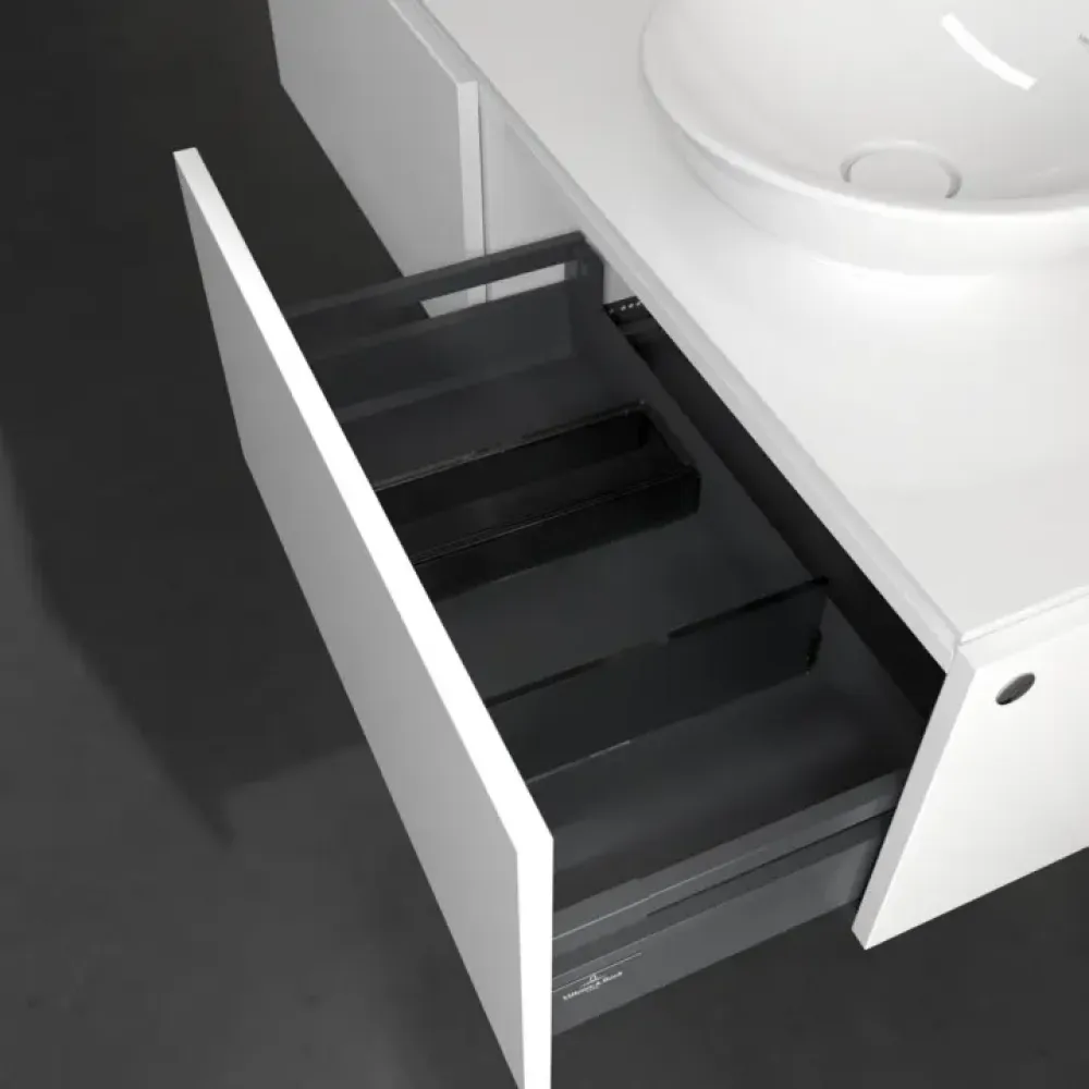 Продуманное внутреннее разделение мебели для ванной Villeroy & Boch позволяет создать индивидуальную систему организации пространства в ванной комнате. Элементы, расположение которых можно менять, например регулируемые стеклянные перегородки и контейнеры для аксессуаров различных размеров, обеспечивают хороший обзор и порядок. Благодаря практичной системе внутреннего разделения вы будете быстро находить принадлежности для ванной, которыми вы постоянно пользуетесь.