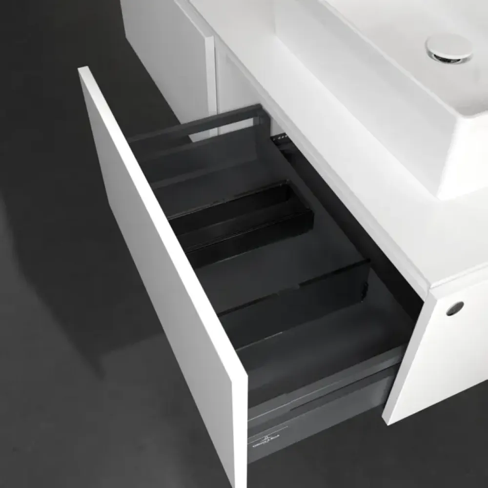 Продуманное внутреннее разделение мебели для ванной Villeroy & Boch позволяет создать индивидуальную систему организации пространства в ванной комнате. Элементы, расположение которых можно менять, например регулируемые стеклянные перегородки и контейнеры для аксессуаров различных размеров, обеспечивают хороший обзор и порядок. Благодаря практичной системе внутреннего разделения вы будете быстро находить принадлежности для ванной, которыми вы постоянно пользуетесь.